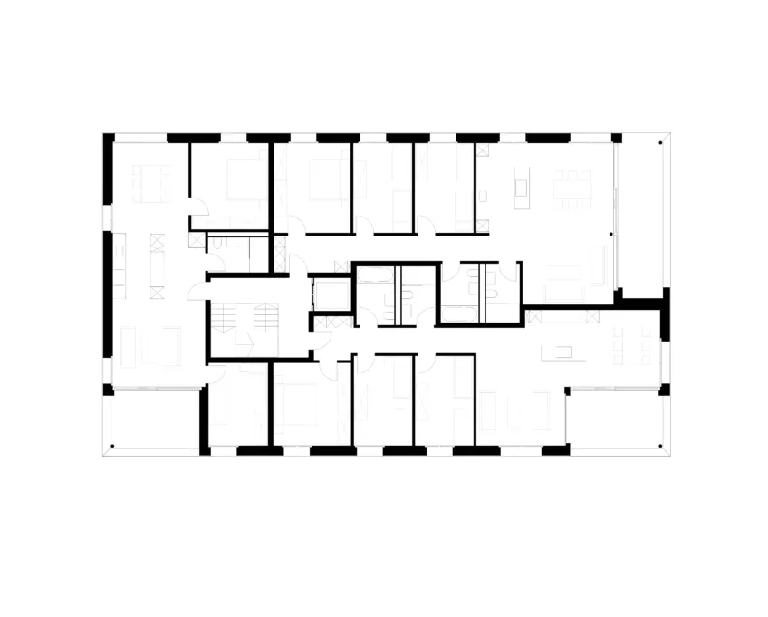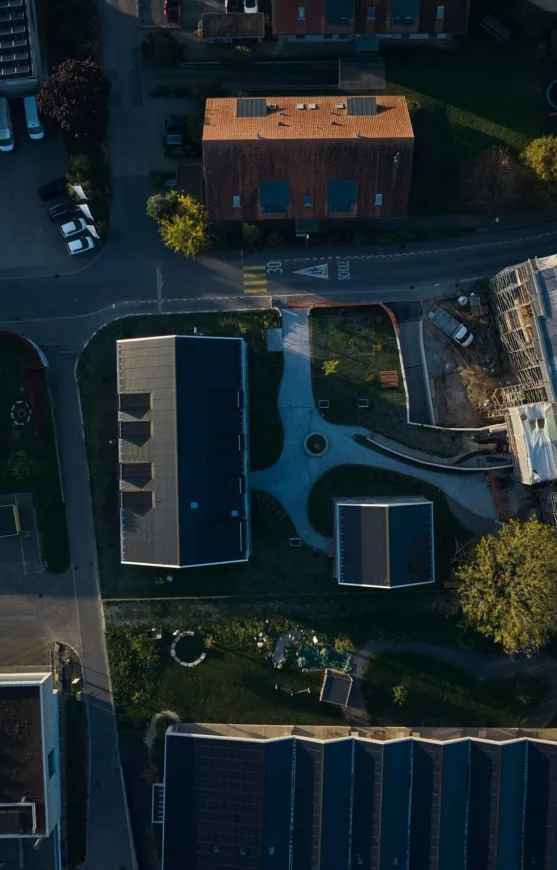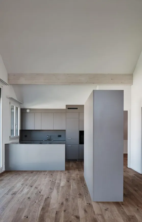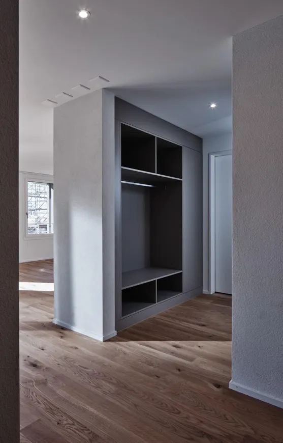 Das angrenzende Mehrfamilienhaus beherbergt neun Wohnungen, darunter zahlreiche 3,5- und 4,5-Zimmer-Wohnungen. Diese erstrecken sich über drei Geschosse und bieten den Bewohnern und Bewohnerinnen ein Höchstmass an Privatsphäre und Raum für Entfaltung. Die Wohnungen sind so gestaltet, dass sie den Ansprüchen einer modernen Familie gerecht werden, die nach einem komfortablen Lebensraum suchen. Der Zugang zu den Wohnungen ist bequem über Aufzüge möglich, die direkt vom unterirdischen Parkhaus aus erreichbar sind. Diese praktische Lösung garantiert den Bewohnern nicht nur eine stressfreie Ankunft nach einem langen Tag, sondern verleiht den Gebäuden auch zusätzliche Funktionalität.
